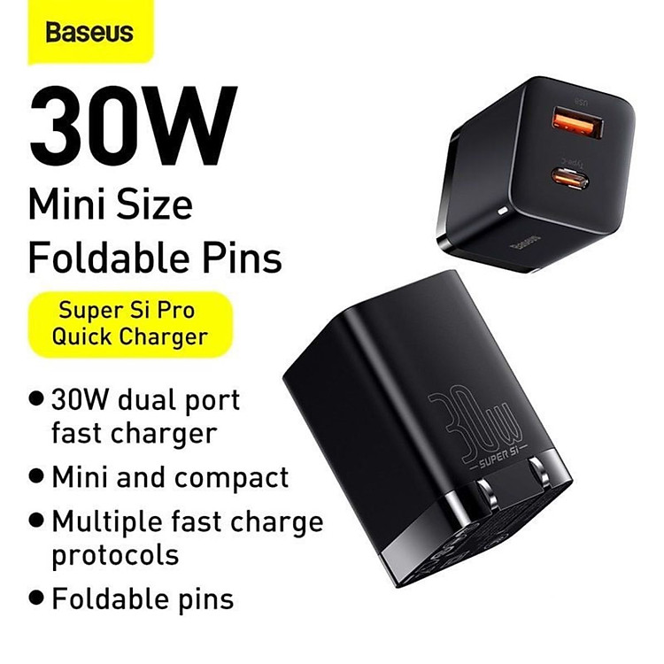 Tính năng Củ sạc nhanh nhỏ gọn 30W Baseus Super Si Pro Quick Charger 1C+ 1U (CCSUPP)