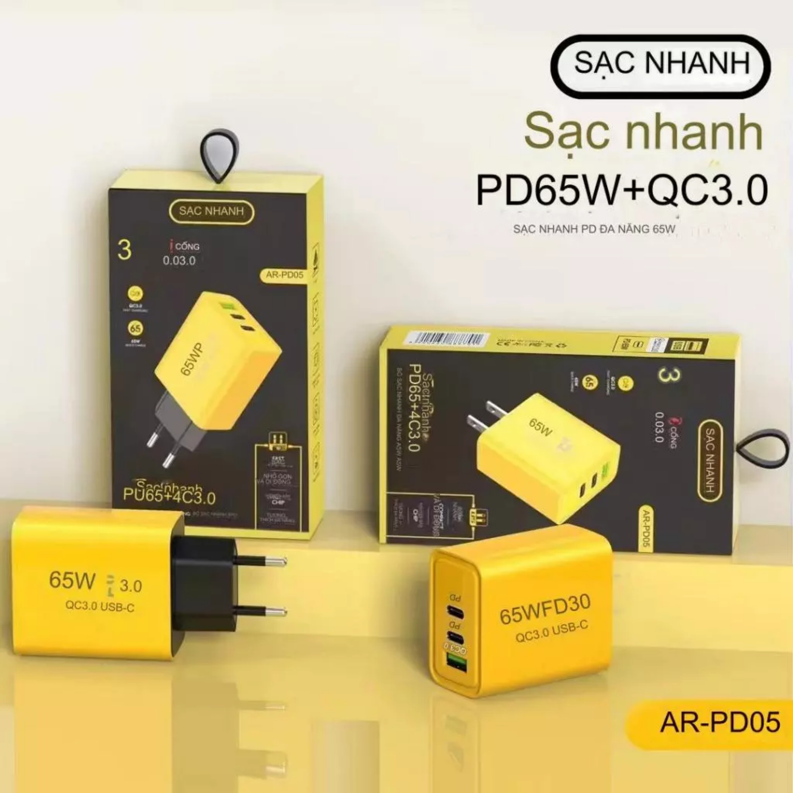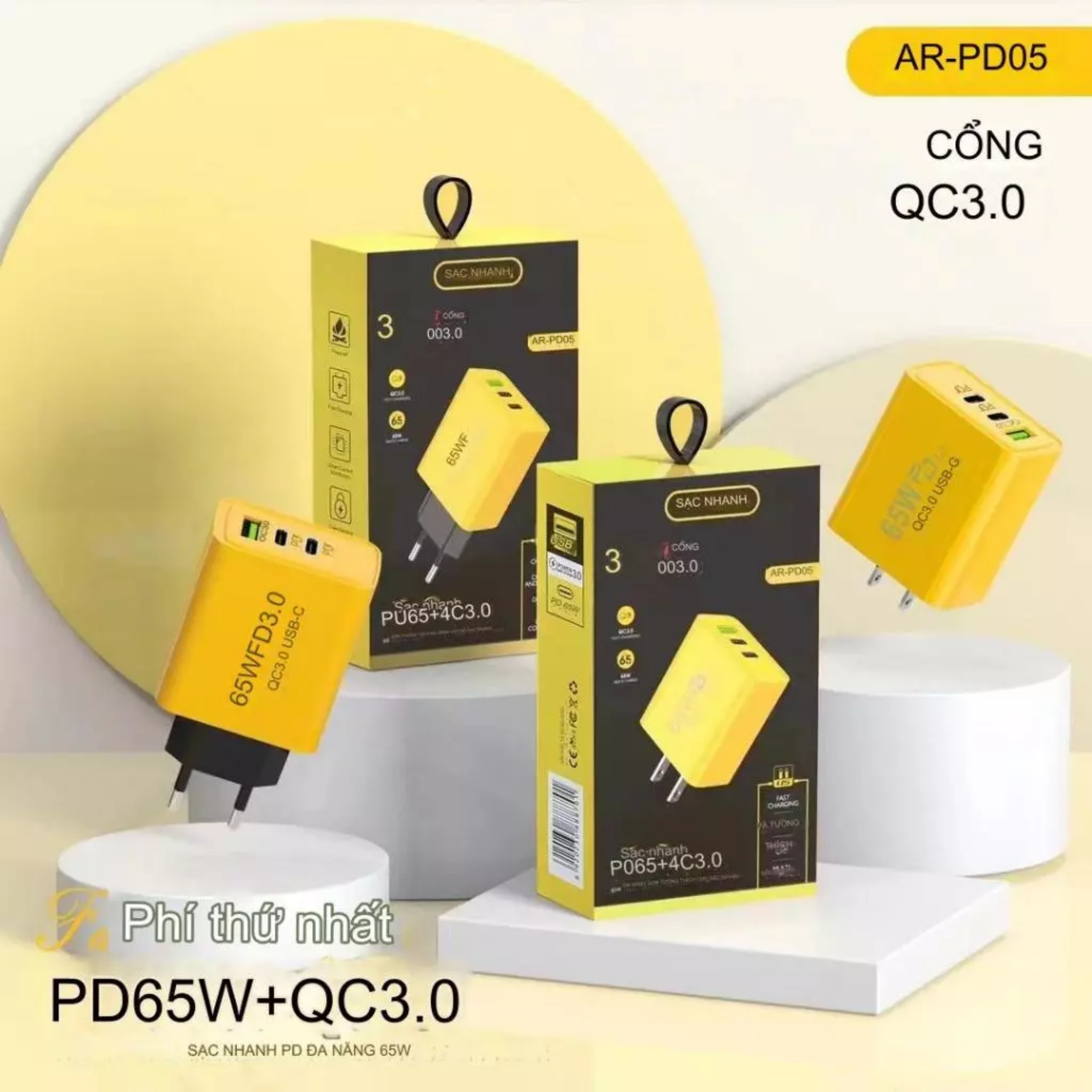 Thông số kỹ thuật: Tên: khối nhanh Công suất: 65W (1 USB A + 2 Loại C)