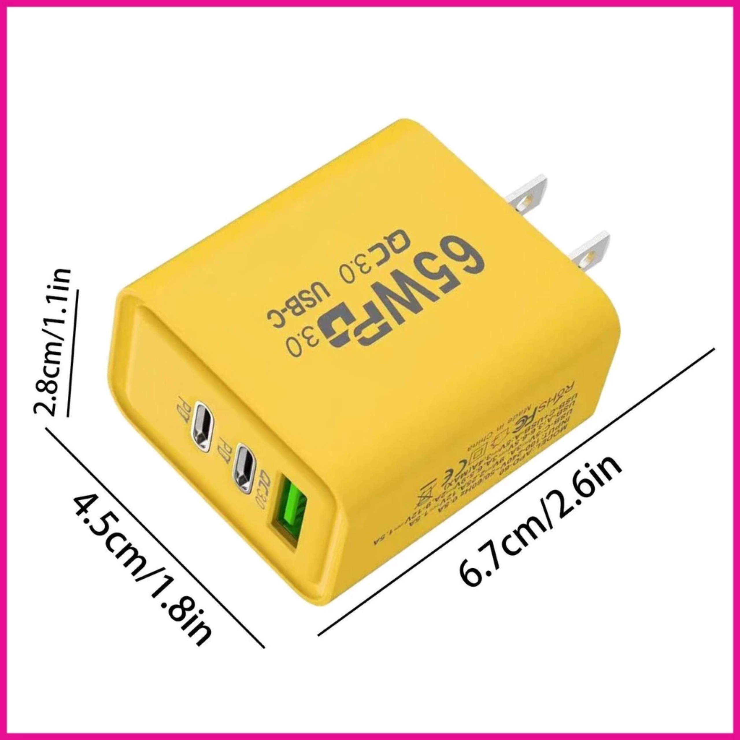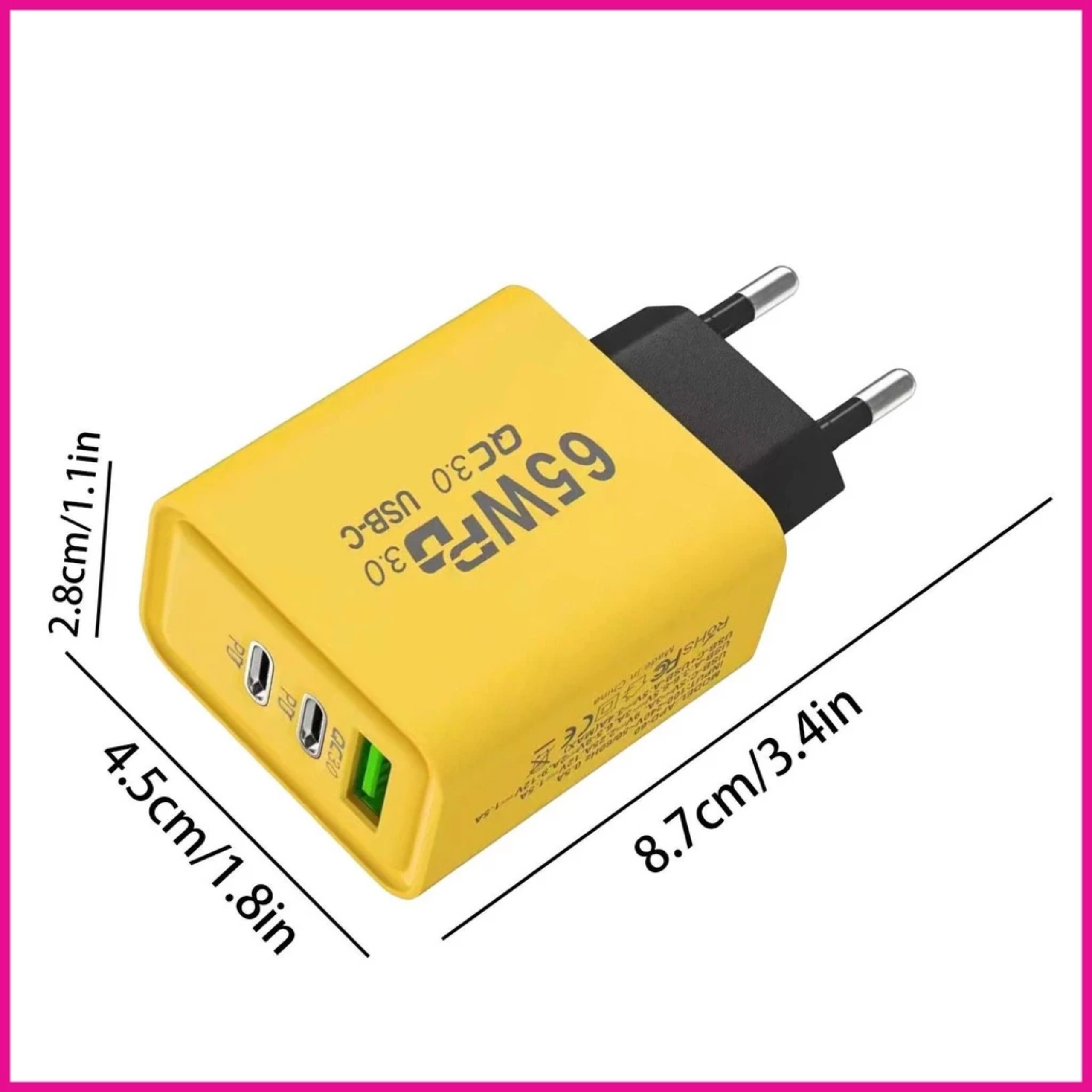 Điểm dấu đầu dòng: 1.Phong cách thời trang-Chuyển tiếp: Hãy khẳng định nhanh chóng với khối sạc USB này với màu vàng lạnh, tôn lên vẻ ngoài hợp thời trang. Vẻ ngoài thời trang của nó tạo thêm nét tinh tế cho thói quen sạc của bạn, thể hiện gu thẩm mỹ tinh tế của bạn. 2.Tiện lợi tiết kiệm thời gian: Với cổng USB kép TYPE-C + đơn, khối sạc USB này sạc nhanh nhiều thiết bị cùng một lúc. Tiết kiệm thời gian chờ đợi và làm việc hiệu quả. Hoàn hảo cho những người bận rộn khi di chuyển. 3.Chất liệu chống cháy: Với thân làm bằng chất liệu chống cháy, bộ sạc nhanh USB này đảm bảo sạc an toàn và đáng tin cậy cho các thiết bị của bạn. Ngăn ngừa sạc quá mức, quá nhiệt, đoản mạch và các đám cháy tiềm ẩn để có trải nghiệm không cần lo lắng. 4.Khả năng tương thích linh hoạt: Với sự hỗ trợ đầu vào điện áp rộng từ 100-240V, khối sạc usb này nhanh chóng không cần bộ chuyển đổi, khiến nó trở thành giải pháp hoàn hảo để sử dụng toàn cầu. Nó được thiết kế để phù hợp với ổ cắm của Hoa Kỳ và Châu Âu, là sự lựa chọn lý tưởng cho những người thường xuyên đi du lịch. 5.Sạc thân thiện với du lịch: Đừng để pin yếu làm bạn chậm lại! Khối sạc USB của chúng tôi là một giải pháp hiệu quả và thiết thực sẽ không chiếm nhiều không gian. Trọng lượng nhẹ chỉ 50 gram, nó hoàn hảo để dễ dàng cất giữ và lý tưởng cho các chuyến du lịch, công tác và sử dụng văn phòng. Thiết kế an toàn và đáng tin cậy đảm bảo sạc hiệu quả mọi lúc, mọi nơi - ngay cả quốc tế! Nhẹ, nhỏ gọn và di động, bộ chuyển đổi này hoàn hảo cho nhu cầu sạc khi di chuyển.