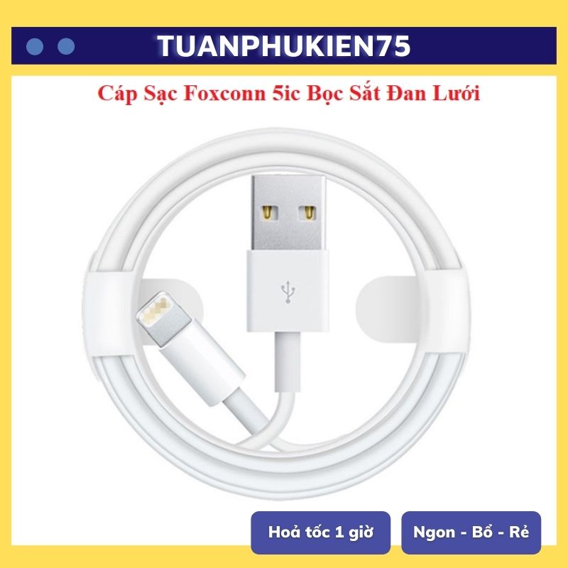 Cáp Iphone lightning Foxcom 5IC Đan Lưới Bọc Sắt - Chip 3415 cao cấp an toàn cho thiết bị