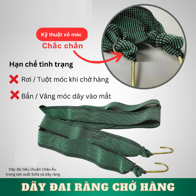Giúp chằng buộc hàng hóa chắc chắn, an toàn hơn khi di chuyển – phù hợp cho người đi làm, đi chợ, giao hàng và vận chuyển hàng hóa thường xuyên.