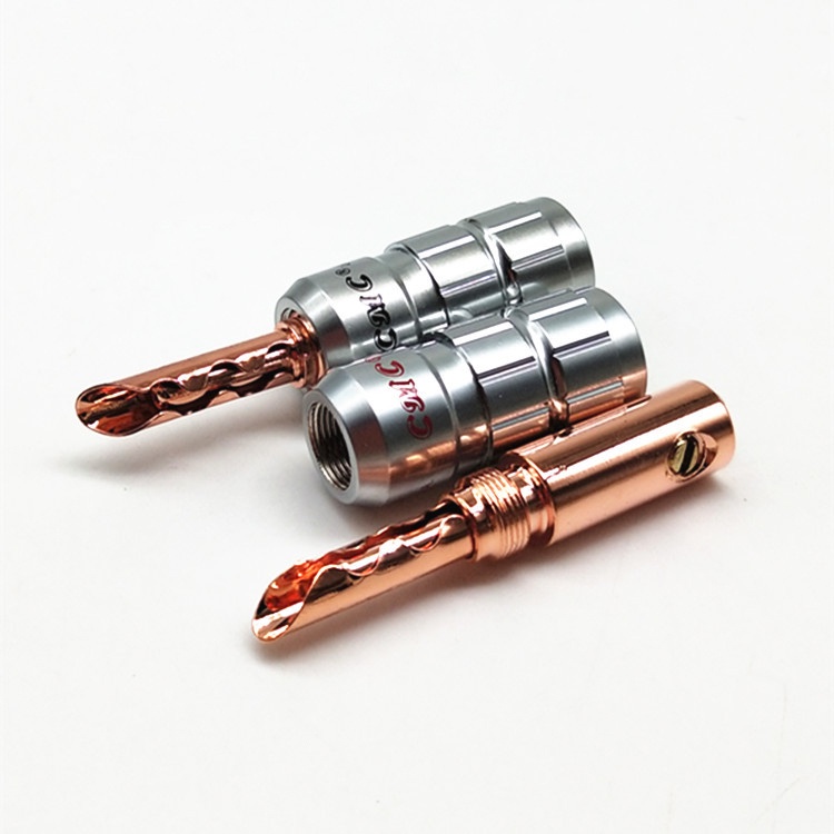 – Jack banana răng cưa đồng thau CMC vỏ thép siêu bóng dùng để kết nối cho hệ thống âm thanh từ thiết bị xử lý tín hiệu đến các thiết bị nhận như loa, các bộ xử lý, cục đẩy ,... hiện nay jack bắp chuối đượng sử dụng rất rộng rãi trong hệ thống âm thanh từ gia đình đến hội trường, từ hệ thống âm thanh cỏ đến các hệ thống âm thanh cao cấp HIFI của các dân chơi. Các jack bắp chuối hiện nay được thiết kế với tiếp xúc nhiều nhất và chặt nhất giúp cho âm thanh giữ được những tín hiệu quan trọng khi đi qua jack bắp chuối này.