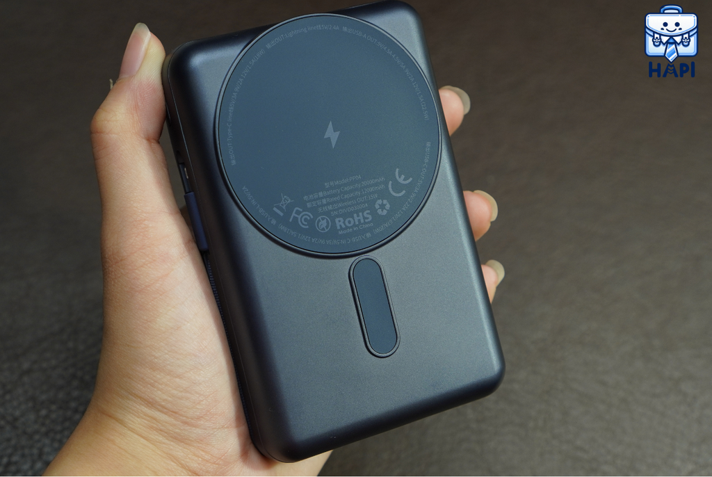 Loại sạc: Sạc dự phòng tích hợp cáp Type-C và L, sạc không dây từ tính -