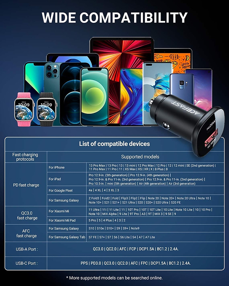 - Chủ yếu phù hợp để sạc nhanh PD cho i.phone, Samsung, i.pad và các thiết bị di động khác. Nó cũng có thể được sử dụng để sạc nhanh khẩn cấp PD cho máy tính xách tay USB-C