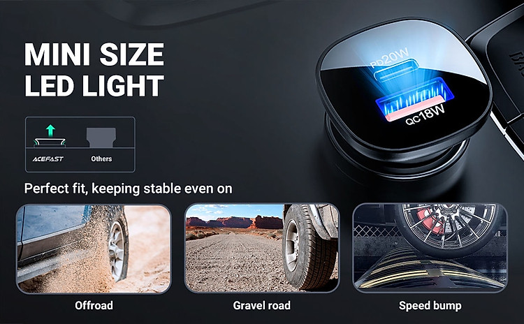 Có trang bị đèn LED nhỏ, cài đặt sạc trên ô tô hoàn chỉnh và chắc chắn dù cho xe di chuyển qua các loại bề mặt đường khác nhau. Kích thước sạc nhỏ, tiết kiệm không gian