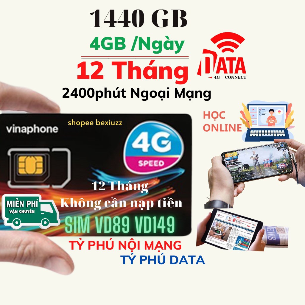 5️⃣ Loại 5 : Sim Vd89(D60G) 12 Tháng ( 720GB) - Có 2Gb /1 ngày x 365 ngày - Gọi điện miễn phí nội mang <20 phút , ngoại mạng tặng 50phút /1 tháng x 12 tháng (Phí gia hạn tháng :(0d) Dùng 1 năm KHÔNG cần nạp tiền !!! )
