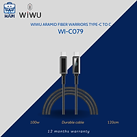 Cáp sạc hàng chính hãng WiWU Aramid Fiber Warriors Type-C to Type-C Wi-C079 lớp bảo vệ aramid siêu bền, đầu hợp kim chống gỉ