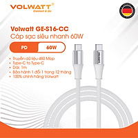 Cáp sạc siêu nhanh 60W Volwatt GE-S16-CC hàng chính hãng | Cáp Type-C to Type-C truyền dữ liệu 480Mbps, dây bện, dài 1m | BH 12 tháng